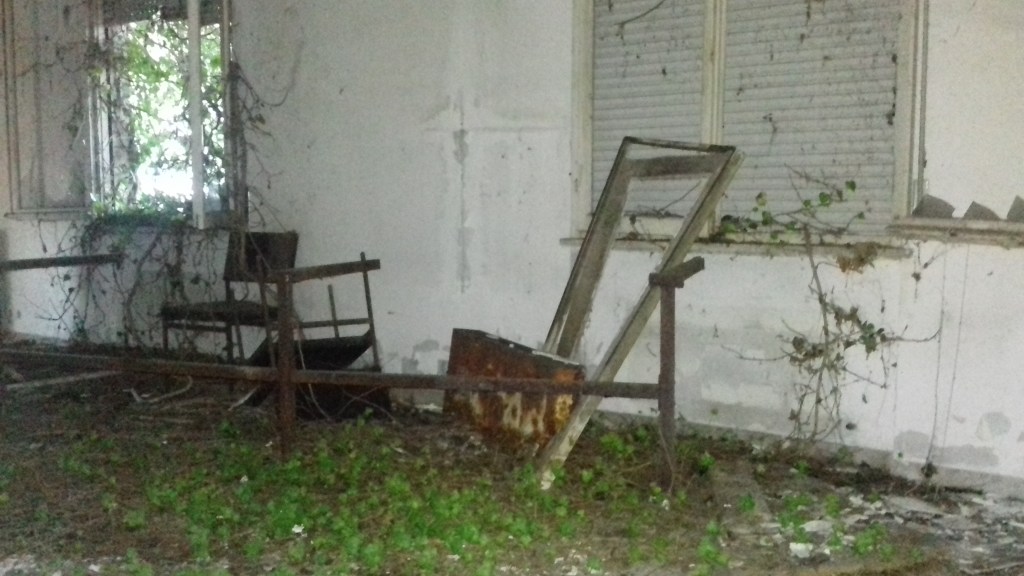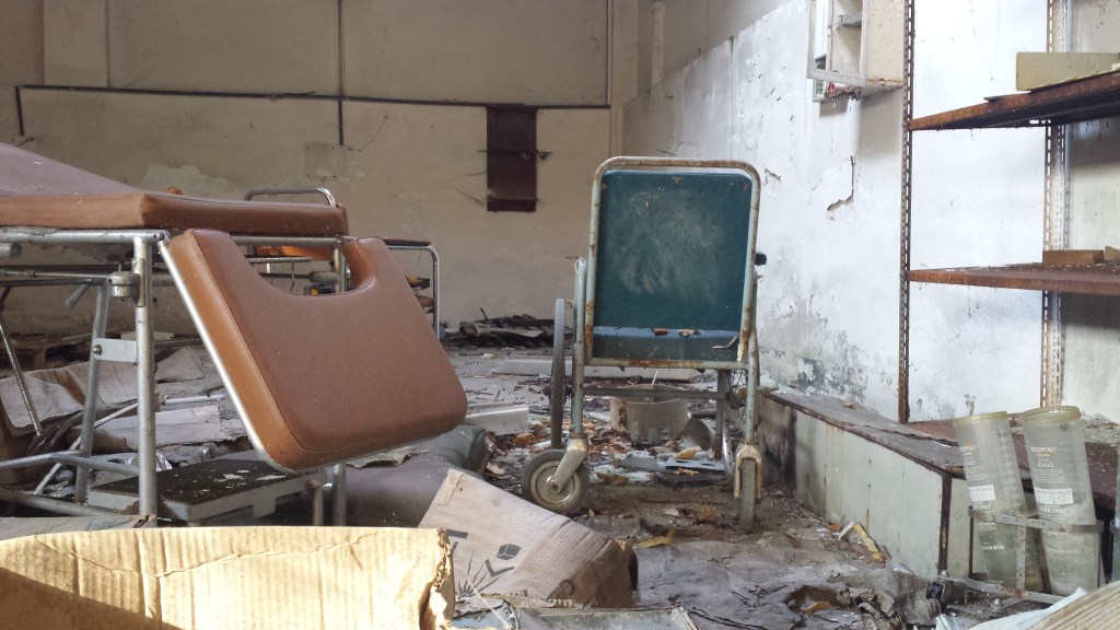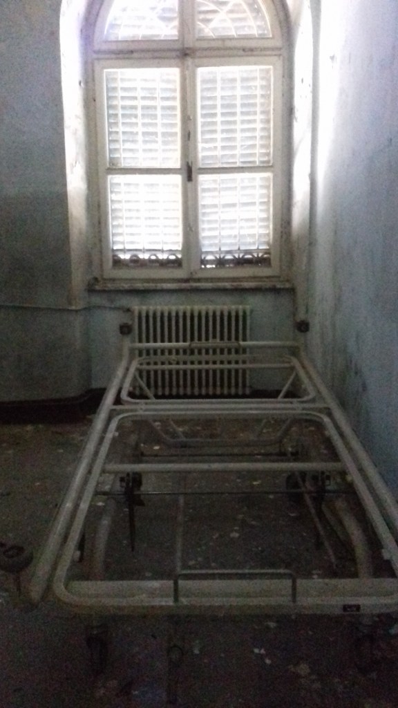 lettino pediatrico nel manicomio abbandonato di Vercelli (risalente però, con buona probabilità, al periodo in cui la struttura era già stata destinata ad ospitare diversi ambulatori, dopo la legge Basaglia)
