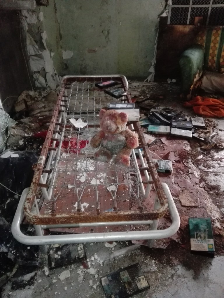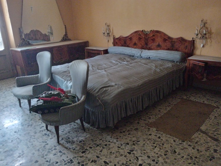 Nella sala da pranzo è presente il nastro di una corona funebre più recente, probabilmente relativa all’ultimo occupante della casa. Forse in un primo momento i parenti avevano incominciato a mettere via le sue cose poi tutto si è fermato. I vestiti, i mobili, i soprammobili, i giocattoli, tutto è da allora rimasto lì, come in un limbo. Vite, felicità, dolori, ricordi, tutto è immobile, immerso in un’atmosfera particolare, piuttosto triste in verità.