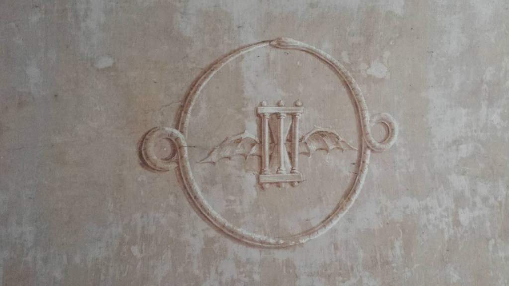 Uno dei simboli più interessanti è questo, che è di per sé la somma di altri simboli: l’uroboro, la clessidra, l’infinito. Posto sulla cripta della chiesa probabilmente vuole rassicurarci riguardo il fatto che la morte non esiste, che tutto è un ciclo e che siamo tutti parte dell’infinito.