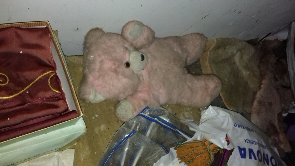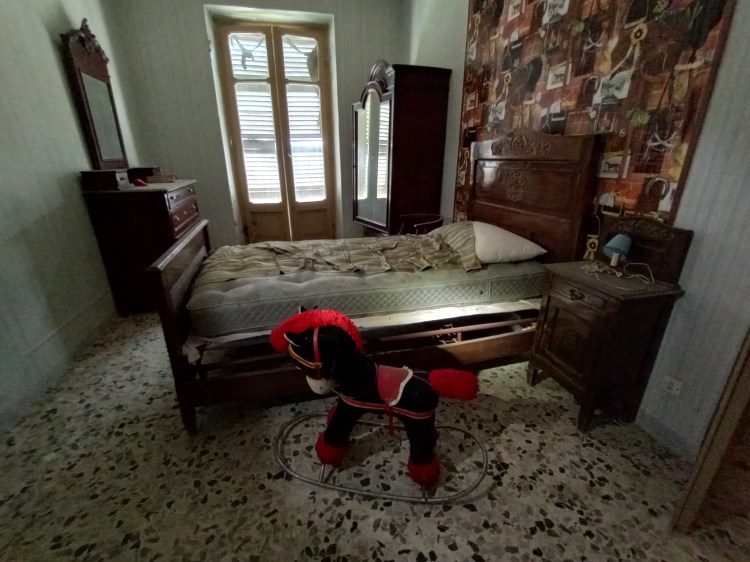 Ma la vita continua, la casa è stata abitata nei decenni seguenti forse dai genitori e dalla sorella, che a sua volta ha avuto dei bambini. Ci sono infatti diversi giocattoli sparsi in giro per le stanze: una macchinina a pedali, un carrarmato, una gru, un cavallino a dondolo. Probabilmente c’era un maschietto tra i bambini che abitavano qua. Chissà, forse aveva lo stesso nome dello zio. Ovviamente queste sono solo ed esclusivamente mie supposizioni, è la fantasia che corre…