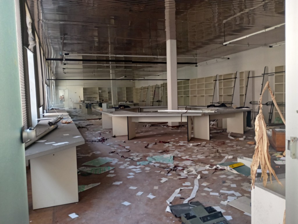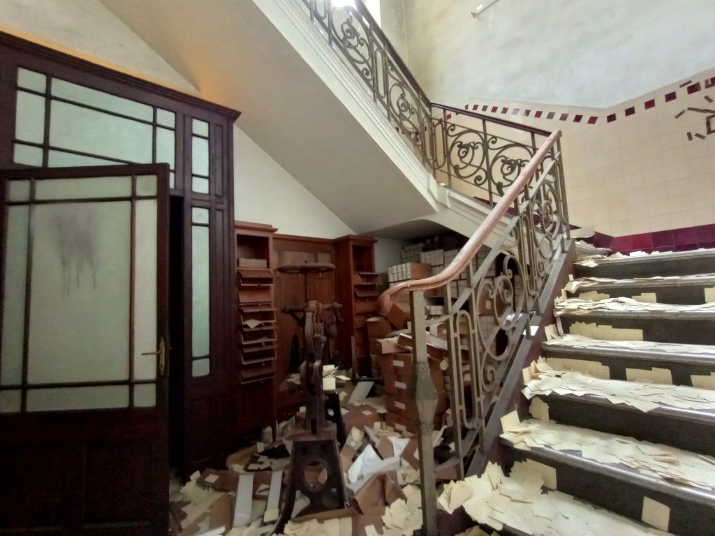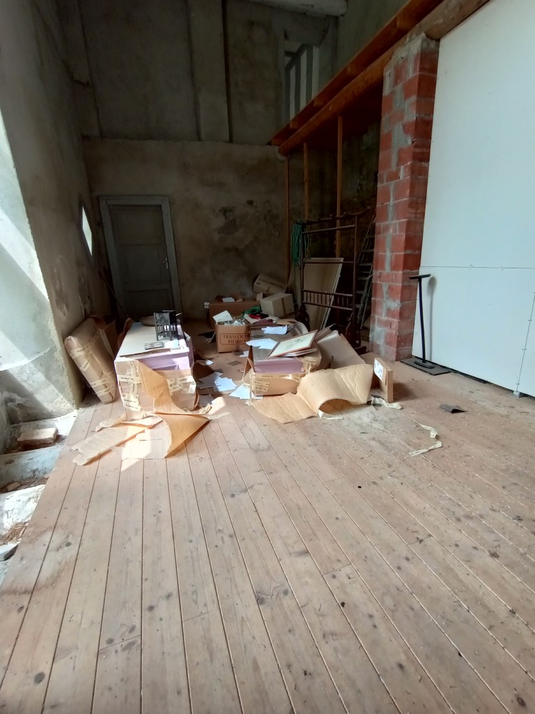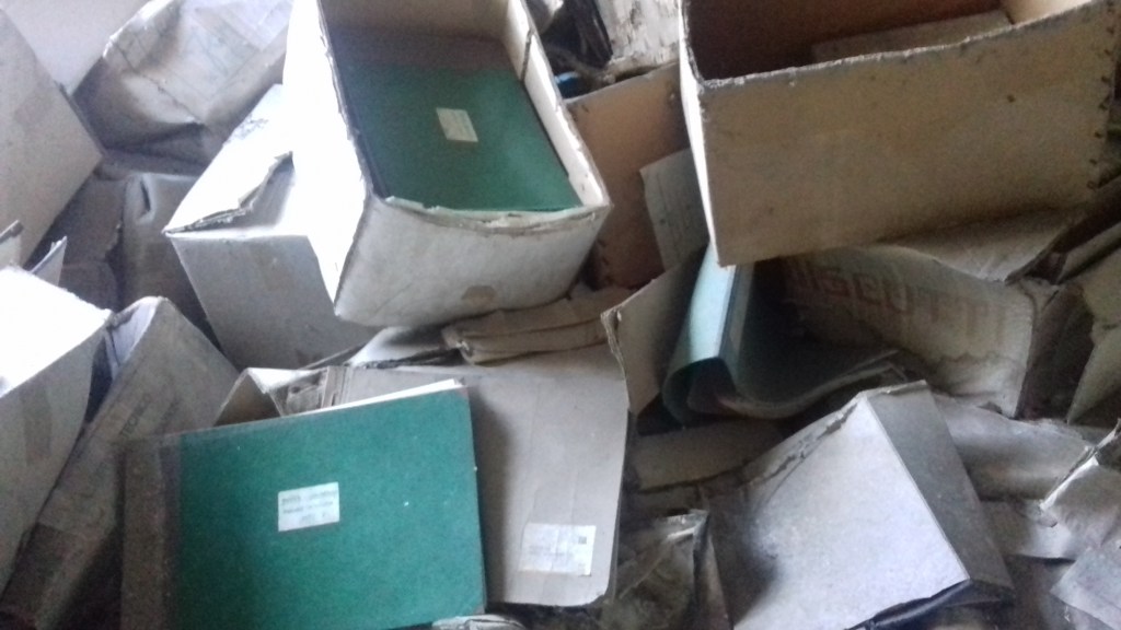 Documenti accatastati in una stanza al piano superiore della palazzina degli uffici