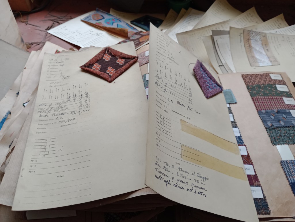 Molte stanze sono a soqquadro, come se fosse passato un tornado. Un ufficio presenta i segni di un incendio. Sono migliaia i documenti sparsi ovunque nei vari uffici: bolle, ordini, fatture, appunti… Centinaia di campionari sono presenti in molte zone del complesso e questo permette di farsi un’idea piuttosto precisa riguardo la produzione, che era vastissima e molto sofisticata.