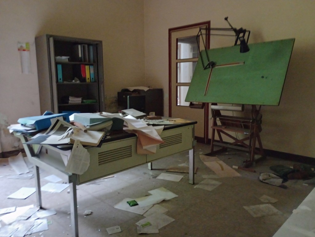Si passa poi alle officine meccaniche biellesi, per molto tempo indispensabili all’industria automobilistica (e non solo) piemontese e italiana, come si può capire dalle centinaia di progetti e disegni sparsi per terra in quello che era l’ufficio tecnico.