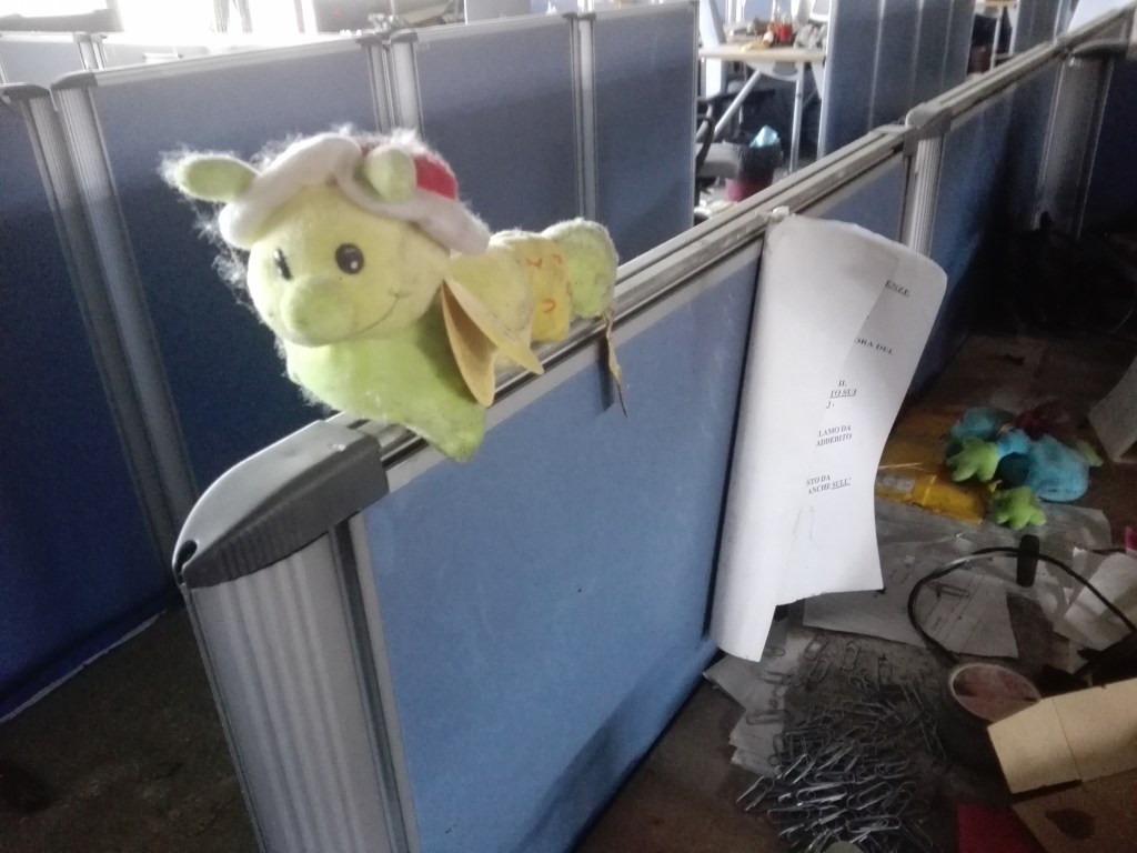 Non dimentichiamoci delle decine di peluches promozionali dimenticati dentro uno dei tanti stabilimenti abbandonati dell’Olivetti, lasciati lì dopo la fuga precipitosa degli impiegati del call-center a causa di un incendio sviluppatosi nel capannone adiacente.
