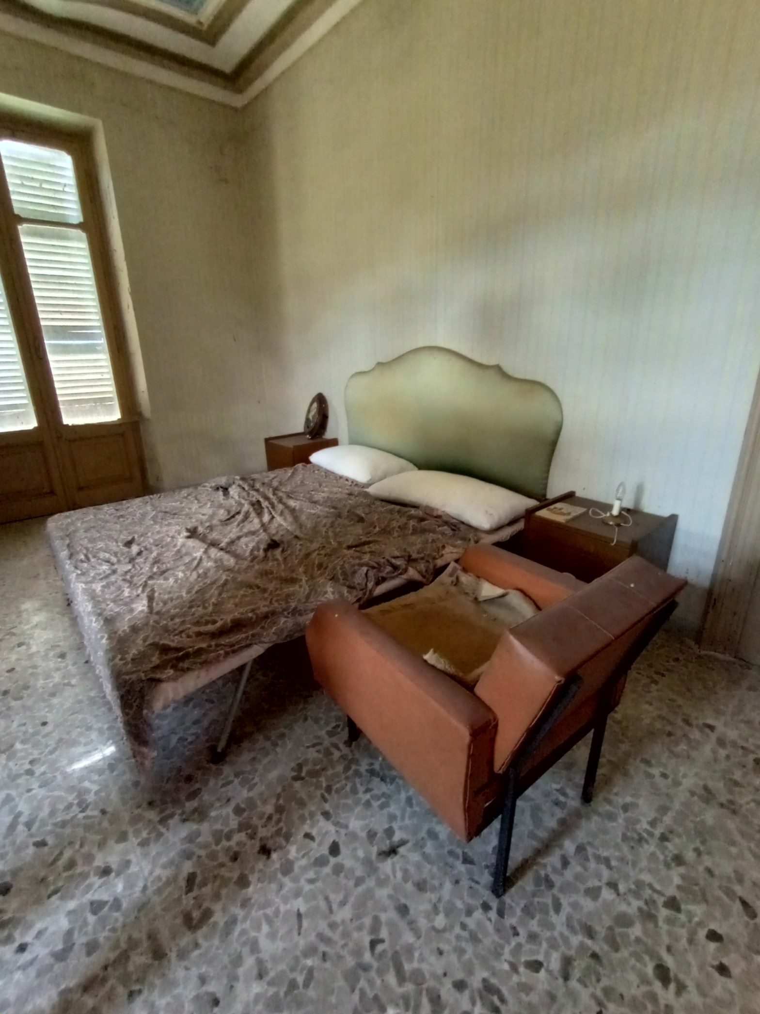 A metà tra una casa e una villa, con tante stanze da letto, soffitti affrescati, arredamento anni Cinquanta ma anche con bagno e cucina in puro stile anni Settanta, un mix piuttosto strano a dire il vero.