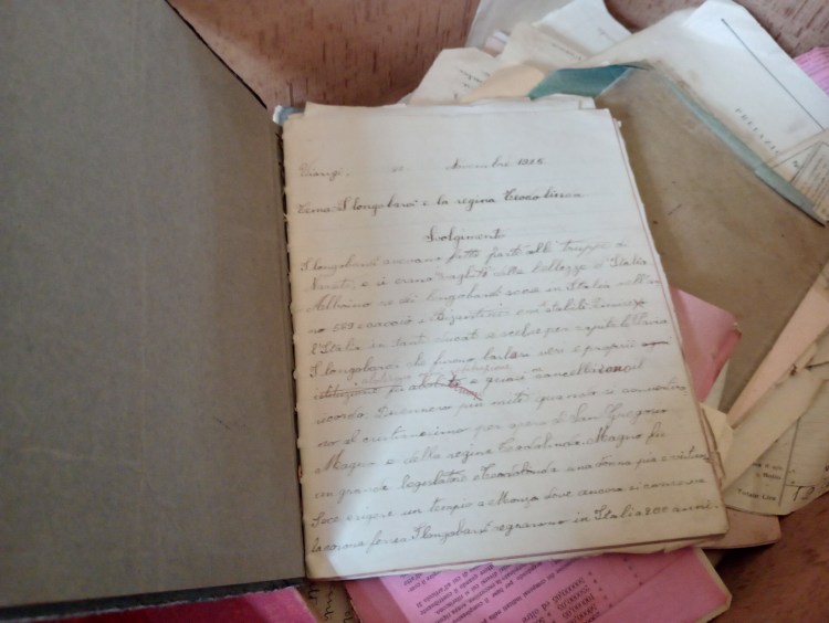 Qualcuno ha messo in bella mostra su un letto un manifesto funebre del 1943 relativo alla morte di un ragazzo di 27 anni vicino a uno scatolone con diversi quaderni scolastici, molti degli anni Venti. Erano i suoi quaderni delle elementari? Anni in cui quel bambino non aveva idea di cosa il destino avesse in serbo per lui.